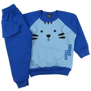 Este conjunto infantil masculino é perfeito para unir conforto, estilo e diversão. A peça principal é o casaco de manga longa raglan com estampa em silk de tigre e orelhas interativas aplicadas, que encantam e despertam a imaginação dos pequenos. Gola redonda e punhos nas mangas garantem um ajuste confortável.