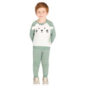 Conjunto Infantil Menino Casaco Flanelado Tigre Interativo - Diversão e conforto para os pequenos! Casaco com silk de tigre e orelha interativa, calça com punho. Disponível nas cores verde, azul e marrom.