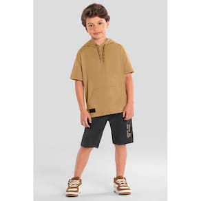 Dê um toque de sofisticação ao guarda-roupa do seu pequeno com o conjunto infantil da Mundi! Composto por uma camiseta em meia malha, este conjunto possui um prático bolso canguru, capuz e cadarço ajustável. A bermuda em ribana orion traz conforto e estilo, com escrita lateral em relevo, bolsos e cós elástico. Ideal para as aventuras diárias, esse look combina conforto e modernidade, permitindo que os meninos brinquem com estilo e liberdade!
