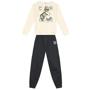 Conjunto infantil menino em moletom peluciado, ideal para os pequenos aventureiros. O blusão possui estampa em puff de skate, mangas longas e gola redonda, garantindo estilo e conforto. Já a calça jogger conta com cós em elástico, perfeita para facilitar os movimentos. Confeccionado em 100% algodão, é macio e respirável, ideal para o dia a dia. Invista!