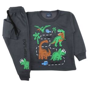 Conjunto Infantil Menino Dino em Moletom Flanelado Inverno