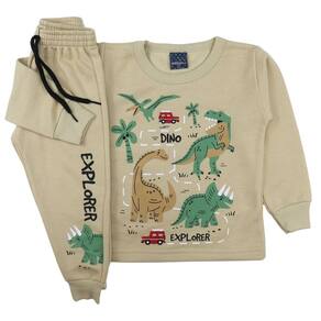 Conjunto Infantil Menino Dino em Moletom Flanelado Inverno - Bege - 2