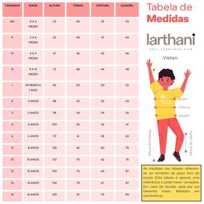 Para garantir o tamanho correto do conjunto de moletom infantil Larthani, consulte a nossa tabela de medidas. Recomendamos comparar com uma peça já em uso para acertar na escolha. Em caso de dúvida, opte sempre por um tamanho maior para garantir o conforto do seu filho.