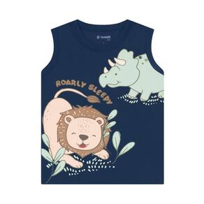 Conjunto infantil menino composto por uma regata confeccionada em malha, apresenta uma divertida estampa de animaizinhos e gola redonda. A bermuda é feita em moletinho sem pelúcia interna, garantindo conforto e liberdade de movimento, com cós em elástico para melhor ajuste. Este conjunto é perfeito para o dia a dia, unindo estilo e praticidade.