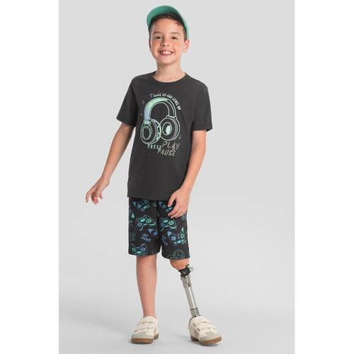 Dê um upgrade no guarda-roupa do seu menino com o incrível conjunto infantil masculino da Brandili! Composto por uma camiseta em meia malha, apresenta uma estampa em puff de temática gamer que vai conquistar os fãs de jogos. A bermuda em moletinho, com estampa similar e cós elástico, garante conforto e liberdade de movimento. Ideal para os dias de diversão, esse look é perfeito para combinar com tênis e acessórios descolados. Deixe seu garoto estiloso e pronto para arrasar!
