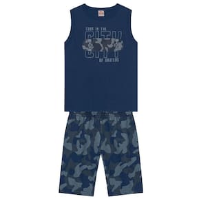 Prepare seu pequeno para aventuras cheias de estilo com o conjunto infantil masculino da Brandili! Composto por uma regata de meia malha com estampa puff de skate, que traz um toque divertido, e uma bermuda em moletinho com estampa camuflada e cós elástico, esse conjunto é perfeito para os dias quentes. Além de confortável, ele garante liberdade de movimento para brincar à vontade. Combine com tênis e um boné para um look descolado e cheio de atitude!