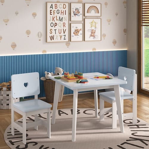 A Mesa Infantil Sofia foi desenvolvida para incentivar a autonomia das crianças. Com altura ideal para que os pequenos alcancem e manuseiem objetos com facilidade, ela é perfeita para atividades lúdicas e educativas. Sua estrutura combina resistência e charme: tampo em MDF de 1,5 cm com acabamento laqueado nas cores azul, branco, rosa ou verde, e pés em madeira maciça de pinus — o que garante durabilidade e facilidade na limpeza.