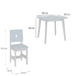 Combinada com a Cadeira Infantil Sofia, o conjunto transforma qualquer ambiente em um espaço mais alegre e acolhedor. As cadeiras possuem estrutura em madeira maciça de pinus com acabamento em verniz, que valoriza o tom natural da madeira. As partes em MDF recebem pintura laqueada com brilho fosco, unindo estilo e resistência. Acabamento da Cadeira/Banco: Verniz Acabamento da Mesa: Verniz Acompanha Manual de Instalação: Sim Ambiente Principal: Quarto Infantil Cadeira/Banco estofada: Não Cadeira/Banco suporta até: 30 kg codigo_ean: 7900288203779 Complexidade da Montagem: Baixa: pode ser montado por uma pessoa sozinha Configuração do Conjunto: Mesa com Cadeiras Cor: Branco / Azul Cor do Produto: Branco / Azul Design da Base: Padrão Enchimento do Encosto: MDF Escala de Brilho: Semi-Brilho Espessura do Tampo: 15 mm Estrutura do Assento: MDF Estrutura do Encosto: MDF Formato do Tampo: Quadrado Itens Inclusos: 1 Mesa, 2 Cadeiras, Kit Ferragens e Manual de Montagem Linha ou Coleção: Sofia Manual de Montagem e Instalação: https://product-hub-prd.madeiramadeira.com.br/539938811/documents/273720ec-3f06-4e36-a77f-7d8692e0e415308883557441753210868526.pdf Marca: Empório Paraíso Material da Base da Mesa: MDF Material da Estrutura da Cadeira: Madeira Maciça Material do Tampo: MDF Material Principal: Madeira Maciça Material Principal das Cadeiras/Bancos: Madeira Maciça Medida da Cadeira/Banco (A x L x P): 57,5X29X31 Medida da Mesa (A x L x P): 48X60X60 Medida do Tampo (L x C x E): 60X60X1,5 Mesa Dobrável: Não Mesa Extensível: Não Mesa suporta até: 15 kg Necessita Montagem: Sim Origem do Produto: Nacional Peso da Cadeira/Banco: 2,9 kg Peso da Mesa: 6 kg Possui Apoio para Braços: Não Possui Apoio Para os Pés: Não Possui Prateleiras: Não Possui Rodízio: Não Possui Suporte Giratório: Não Possui Vidro: Não Quantidade de Cadeiras: 2 Recomendações de Uso, Manutenção e Limpeza: Limpar Com Pano Seco Sistema de Montagem: Parafusos Tipo de Assento: Fixo Tipo de Encosto: Fixo Marca: Não Informado