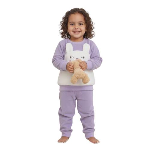 Conjunto infantil composto por blusa de manga longa e calça com cintura elástica, ideal para manter a criança aquecida com muito conforto. A blusa possui aplicação peluciada divertida e toque macio, enquanto a calça oferece ajuste confortável e liberdade de movimentos. Perfeito para o dia a dia, passeios e momentos de descanso, unindo aconchego, praticidade e estilo no inverno.