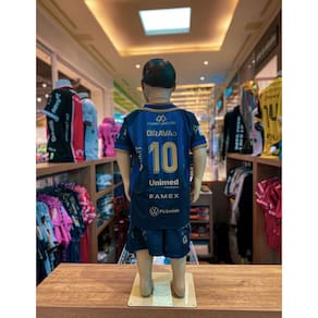 Adquira o conjunto infantil hoje mesmo e faça a alegria dos jovens fãs do Pato Futsal!