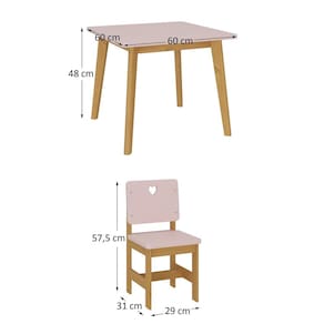 As cadeiras possuem estruturas em madeira maciça de pinus com acabamento em verniz, pintura que preserva a cor natural do produto , as partes produzidas em MDF são laqueadas com brilho fosco. Acabamento da Cadeira/Banco: Verniz Acabamento da Mesa: Verniz Acompanha Manual de Instalação: Sim Almofada do assento: Fixa Almofada do encosto: Não Possui Altura do Conjunto: 48 cm Ambiente Principal: Quarto Infantil Cadeira/Banco estofada: Não Cadeira/Banco suporta até: 80 kg Complexidade da Montagem: Baixa: pode ser montado por uma pessoa sozinha Cor: Rosa/Mel Cor do Produto: Rosa/Mel Design da Base: Padrão Enchimento do Encosto: MDF Escala de Brilho: Fosco Espessura do Tampo: 15 mm Estrutura do Assento: MDF Estrutura do Encosto: MDF Formato do Tampo: Quadrado Itens Inclusos: esquema de montagem, ferragem, Manual de Montagem e Instalação: https://product-hub-prd.madeiramadeira.com.br/960018/documents/b46d7339-890e-40a7-8e11-0dbf49d1f46f2461232574417290992696751.pdf Material da Base da Mesa: MDF Material da Estrutura da Cadeira: Madeira Maciça Material do Tampo: MDF Material Principal: Madeira Maciça Material Principal das Cadeiras/Bancos: Madeira Maciça Medida da Cadeira/Banco (A x L x P): 57,5X29X31 Medida da Mesa (A x L x P): 48X60X60 Medida do Tampo (L x C x E): 60X60X1,5 Mesa Dobrável: Não Mesa Extensível: Não Mesa suporta até: 80 kg Necessita Montagem: Sim Origem do Produto: Nacional Peso da Cadeira/Banco: 3,1 kg Peso da Mesa: 10 kg Possui Apoio para Braços: Não Possui Apoio Para os Pés: Não Possui Prateleiras: Não Possui Rodízio: Não Possui Suporte Giratório: Não Possui Vidro: Não Quantidade de Cadeiras: 2 Recomendações de Uso, Manutenção e Limpeza: LIMPAR COM PANO SECO Sistema de Montagem: PARAFUSOS Tipo de Assento: Fixo Tipo de Encosto: Fixo Marca: Empório Paraíso