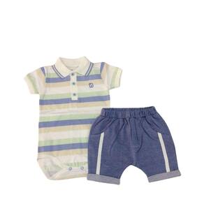 Conjunto Infantil verão Body Polo e Bermuda Noruega Azul Listra