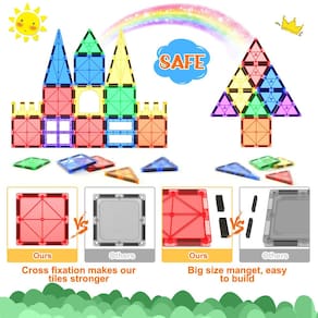 ?Ótimos presentes para crianças?Os ladrilhos magnéticos inspiram criatividade e imaginação, tornando-os um presente perfeito para crianças em festas de aniversário, Natal ou qualquer atividade lúdica em grupo em casa, na sala de aula ou em jogos ao ar livre. Além disso, eles também são muito populares entre os alunos da pré-escola como material escolar. As crianças ficarão entusiasmadas em aprender e se envolver em brincadeiras criativas com esses ladrilhos magnéticos divertidos e educacionais. Perfeito para meninos e meninas com mais de 3 anos.