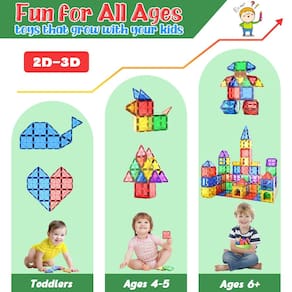 ?CRESCE COM SEU FILHO?Os ladrilhos magnéticos são um brinquedo aberto que cresce com seu filho. As crianças vão gostar de jogos infantis criativos, como mistura de cores, construção de letras e números, reconhecimento de formas, contagem, etc. À medida que crescem de 4 a 5 anos, elas adoram construir estruturas 3D, como castelos, animais e muito mais. Para irmãos mais velhos de 6 a 8 anos, explorar conceitos científicos é empolgante com experimentos envolvendo magnetismo, design de estruturas, etc. Em uma palavra, este é o brinquedo perfeito para crianças de todas as idades.