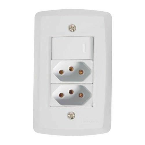Conjunto Interruptor Simples + 2 Tomadas 20a - Linha Lux2 - Tramontina