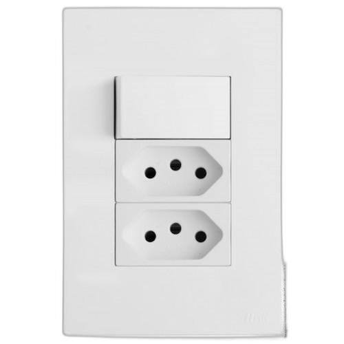 1 - Conjunto interruptor simples + tomada dupla 10a 4x2 - recta branco satin fosco - brs12277-7br