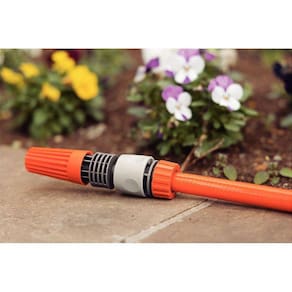 O esguicho é conectado em mangueiras de 1/2, 5/8 e 3/4 através de um sistema de engate rápido, proporcionando uma irrigação precisa e confiável. Além disso, o kit também inclui um engate rápido para mangueira de 1/2, um adaptador com rosca de 3/4 e redução de 1/2 para torneira, e um engate rápido com aquastop para mangueira de 1/2.