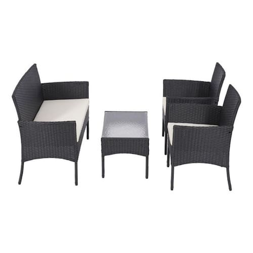 Conjunto Estar Rattan Milan 4 pecas: Transforme seu jardim ou varanda em um espaco elegante e acolhedor com este conjunto de moveis de alta qualidade. O conjunto inclui duas cadeiras confortaveis, uma poltrona espacosa e uma mesa resistente, perfeita para relaxar ao ar livre. Feito com materiais duraveis como aco, polietileno rattan, plastico e poliester, este conjunto e resistente e facil de limpar. Disponivel nas cores preto e cru, o Conjunto Estar Rattan Milan 4 pecas combina com qualquer estilo de decoracao. e com de 3 meses, este conjunto e o complemento perfeito para o seu espaco ao ar livre. Adquira ja o seu e desfrute de momentos de relaxamento e descontracao em grande estilo.