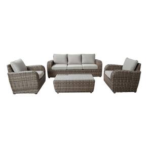 Transforme seu espaco ao ar livre em um verdadeiro oasis de conforto e estilo com o Conjunto Jardim Varanda 4 Pecas Cru Aluminio Rattan - Asturias. Este conjunto, projetado para acomodar ate cinco pessoas, e a escolha perfeita para quem busca aliar funcionalidade e estetica em areas externas. Composto por duas poltronas individuais, um espacoso sofa de tres lugares e uma mesa de centro, este conjunto e ideal para momentos de relaxamento ou para receber convidados em um ambiente acolhedor. A estrutura robusta em aco, combinada com o acabamento em rattan sintetico de alta qualidade, garante durabilidade e resistencia, mesmo em condicoes climaticas adversas. O design boho chique, com a cor cinza elegante, confere um toque de sofisticacao e modernidade ao seu jardim ou varanda. Alem disso, o conjunto nao requer montagem, proporcionando praticidade e economia de tempo. Cada peca foi cuidadosamente dimensionada para oferecer maximo conforto, com medidas que atendem as necessidades de qualquer espaco. As poltronas medem 81x86x92 cm, o sofa 82x212x92 cm, e a mesa de centro 41x111x61 cm, garantindo que todos os elementos se integrem harmoniosamente em seu ambiente. Com um peso bruto de 90,8 kg e peso liquido de 79 kg, o conjunto e estavel e seguro, sem comprometer a facilidade de movimentacao quando necessario. Importado e com garantia de tres meses, o Conjunto Asturias e a escolha definitiva para quem nao abre mao de qualidade e estilo em seus momentos de lazer ao ar livre. Capacidade de Pessoas: 5 Peso Bruto: 90,8 Kg Peso Liquido: 79 Kg Numero de Pecas: 4 Requer Montagem: Nao Material da Estrutura: Aco Material da Superficie: Rattan Sintetico Dobravel: Nao Estilo do Produto: Boho Chique Incluso: 2 Poltronas de 1 Lugar, 1 Sofa de 3 Lugares e 1 Mesa de Centro Cor: Cinza Material: Polirata Modelo: Asturias Origem: Importado Uso: Domestico Garantia: 3 Meses Medidas da Poltrona: 81x86x92 cm Medidas do Sofa: 82x212x92 cm Medidas da Mesa: 41x111x61 cm Marca: Não Informado