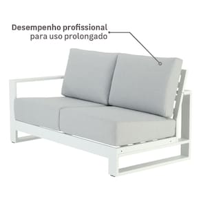 Fabricado em aluminio de alta qualidade com um acabamento em branco e cinza, este conjunto combina durabilidade excepcional com um design moderno e sofisticado. O material em aluminio garante resistencia a corrosao e as intemperies, tornando-o uma escolha ideal para uso externo, exigindo pouca manutencao e mantendo sua beleza por muito tempo. A estrutura robusta suporta uso continuo, proporcionando anos de lazer.