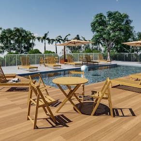 MadeiraTransforme seu espaco externo com o Conjunto para Jardim Mesa Dobravel e 4 Cadeiras Solarium Naterial. Ideal para quem busca praticidade e elegancia, este conjunto em madeira na cor canela combina durabilidade e um visual rustico sofisticado. A mesa dobravel de 72x90x90cm oferece versatilidade, permitindo otimizar o espaco quando nao esta em uso, enquanto as quatro cadeiras proporcionam conforto para reunir a familia e amigos.