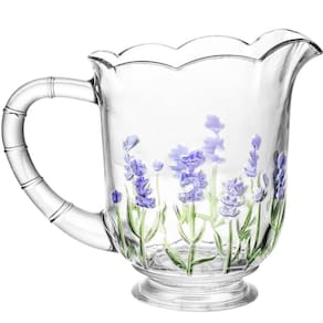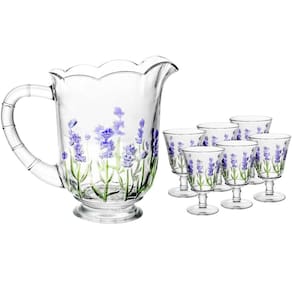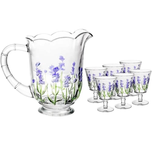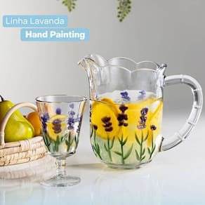 Conjunto Jarra 1,5L e 6 Taças 240ml de Cristal Lyor Lavanda Hand Painting Para Sucos Água.
