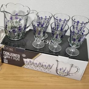 Conteúdo: 1 jarra e 6 taças de cristal Lyor;