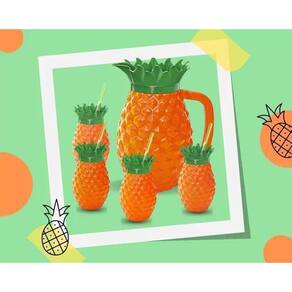 Com o Kit de Jarra e Copos de Abacaxi de Plástico, você não apenas serve suas bebidas, mas também compartilha uma experiência divertida e envolvente. Deixe o charme do abacaxi transformar seus momentos com uma pitada de calor e diversão.