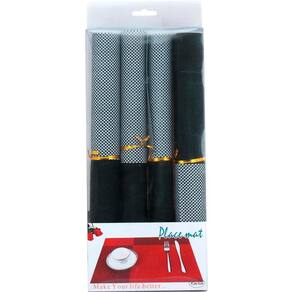 - conjunto americano fabricado em pvc, sendo composto por 4 peças. - tamanho de 45x30cm, ideal para mesa posta. - peças produzidas artesanalmente com material resistente e durável. - o design do conjunto é elegante e sofisticado, podendo ser utilizado em qualquer ocasião. Especificações: