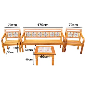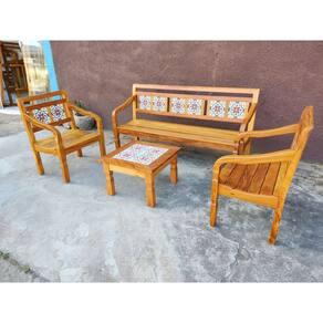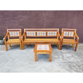 O Conjunto com 1 Banco, 2 Poltronas e 1 mesa de centro em Madeira de Demolição é para você que procura uma peça bonita e campestre. Altamente resistente e durável, é um item em estilo rústico com detalhes em ladrilho hidráulico, proporcionando elegância e um diferencial ao seu ambiente. A peça é produzida em madeira de demolição com acabamento em verniz, dando mais resistência e durabilidade no produto. Deixe sua casa ainda mais bonita e sofisticada com o Conjunto com 1 Banco, 2 Poltronas e 1 mesa de centro da Sudeste Rústico.