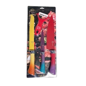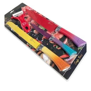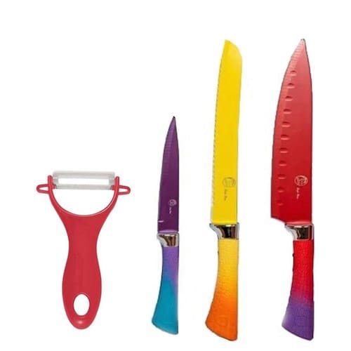Conjunto Jogo De Facas 4 Peças Talheres Com Descascador Safe Buy Coloridas