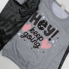 A blusa é feita em moletom flanelado, quente e macio, com recorte moderno nas mangas em cirrê, gola redonda e acabamento com punho nos braços e na barra. A estampa em silk adiciona um toque jovem e estiloso ao visual.