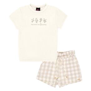 Este é para todas as fashionistas que adoram um look diferente, moderno e charmoso. Composto por blusa cotton leve na cor off white com bordado paetê de flores e gola redonda reforçada. Já o short é em tecido xadrez off white fio tinto e helanca, possuí amarração com cordão. Indispensável no armário das meninas.