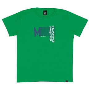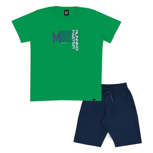 Praticidade também é essencial para o dia a dia dos meninos e conjuntos estão aqui para servir muito look variado e praticidade. Composto por camiseta meia malha hortelã, gola reforçada, mangas longas e estampa frontal gel relevo com escrita "correndo mais rápido! não olhe para trás! foco no objetivo!"