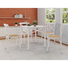Conjunto Katrina Branco 4 Lugares Tampo De Madeira Quadrado 90 Cm Asturias