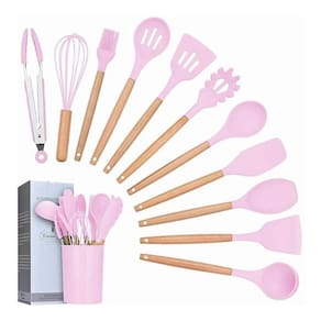 Conjunto de kit 11 peças de utensílios de cozinha de silicone não arranha a panela, fácil de limpar utensílios cozinha