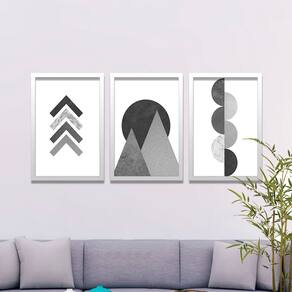 Conjunto Kit 3 Quadros Geometria Artística Moldura Branca 3 Quadros 45x33cm cada Tamanho Montado 45x103cm A melhor qualidade em Molduras do Mercado Única com Moldura de madeira Pinus 100% lisa, livre de imperfeições com superfície laqueada . Não é MDF. Quadros com vidro e pendurador. Os quadros vão Super Embalados garantindo que cheguem intactos.