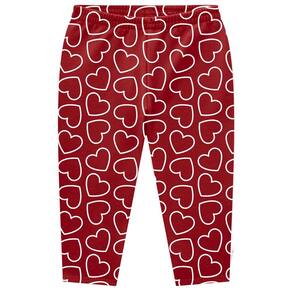A calça legging em cotton vem na cor vermelha com estampa de corações, combinando perfeitamente com a blusa. É macia, flexível e ajusta-se bem ao corpo da criança, permitindo total liberdade nos movimentos.