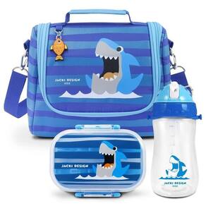 Conjunto Lancheira Térmica com Garrafa 460ml e Pote p/ lanche de 2 Andares 400ml Azul - Montamos um kit perfeito pra você!