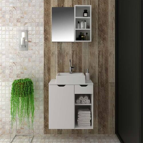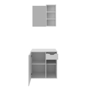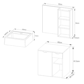 O Kit para Banheiro é a escolha ideal para dar um toque de elegância e organização ao seu espaço. Com um design contemporâneo, ele transforma o ambiente em um local mais convidativo e prático. Fabricado com materiais de alta qualidade, o kit oferece durabilidade e um visual sofisticado, tornando seu banheiro ainda mais funcional e bonito. CARACTERÍSTICAS TÉCNICAS: - Produzida em MDP de 15 mm - Acabamento UV na cor Branco - Cuba em Mármore Sintético - Acompanha Espelho - Gavetas com Corrediça Metálica - Puxador tipo Cava - Balcão Suspenso *Kit Composto por Gabinete Suspenso (3605), Espelheira (3609) e Cuba (3630) INFORMAÇÕES TÉCNICAS: 3605: Alt. 61,5 cm x Larg. 60 cm x Prof. 38,7 x P. 16,25 3609: Alt. 54 cm x Larg. 60 cm x Prof. 15,6 x P. 7,65 kg 3630: Alt. 11,5 x Larg. 35 x Prof. 34 cm P. 5,5 kg INFORMAÇÕES ADICIONAIS: - ATENÇÃO: Não trabalhamos e não nos responsabilizamos pela montagem do móvel. Antes da montagem conferir se o produto está de acordo com o que comprou, produto montado e danificado pela montagem não será aceito troca. Montagem e instalação por conta do comprador. - As imagens ambientadas são meramente ilustrativas e podem apresentar itens que não compõe o produto. As cores do produto podem variar de acordo com o monitor, a iluminação do ambiente ou sua percepção visual. - Limpeza: Deve ser feita com pano macio e seco ou levemente umedecido com água e sabão neutro. Não devem ser utilizados abrasivos como palha de aço e objetos cortantes. -Garantia para defeitos de fabricação conforme Código de Defesa do Consumidor.