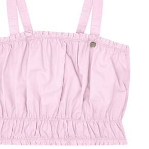 Para as garotas, todo conforto e estilo do verão! O conjunto possuí duas peças confeccionados em tecido sarja na corlavanda sendo a blusa cropped com alças e elásticos no peito e barra, e o short com elastano no cós e fechamento em zíper com botão. As peças podem ser usadas separadamente, aumentando as chances de diversas composições de looks.