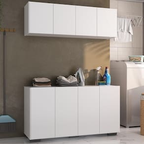 Transforme sua lavanderia num ambiente funcional e elegante com o Conjunto Lavanderia Multiuso Armário Aéreo e Balcão 4 Portas Multimóveis MP5054. Fabricado em MDP (15mm) com acabamento acetinado (cerca de 20% de brilho), garante durabilidade e resistência. Composto por um balcão e um armário aéreo com 4 portas e prateleiras, este kit oferece amplo espaço interno para organizar produtos de limpeza e outros itens de lavanderia. O balcão ainda permite apoiar suas roupas, deixando o ambiente organizado, e possui pés quadrados em polipropileno que oferecem estabilidade e estilo único. O design clean confere um visual moderno e estiloso ao kit. Conteúdo da Embalagem: 1 (um) Balcão 1 (um) Armário Aéreo Manual de Montagem Kit Ferragem