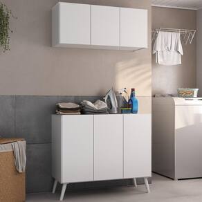 Transforme sua lavanderia num ambiente funcional e elegante com o Conjunto Lavanderia Retrô Multiuso Armário Aéreo e Balcão 3 Portas Multimóveis MP5050. Fabricado em MDP (15mm) com acabamento acetinado (cerca de 20% de brilho), garante durabilidade e resistência. Composto por um balcão e um armário aéreo com 3 portas e prateleiras, este kit oferece amplo espaço interno para organizar produtos de limpeza e outros itens de lavanderia. O balcão ainda permite apoiar suas roupas, deixando o ambiente organizado, e possui pés retrô em polipropileno que oferecem estabilidade e um charme vintage. O design clean confere um visual moderno e estiloso ao kit. Conteúdo da Embalagem: 1 (um) Balcão 1 (um) Armário Aéreo Manual de Montagem Kit Ferragem