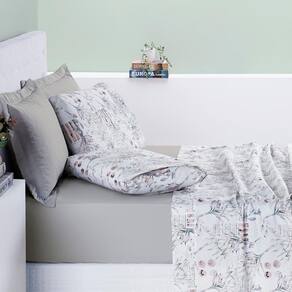 Contém na embalagem: 01 Lençol de Cima 2,60m x 2,40m 01 Lençol de Baixo com Elástico para Colchão de 1,98m x 1,58m x 30cm 02 Fronhas 70cm x 50cm