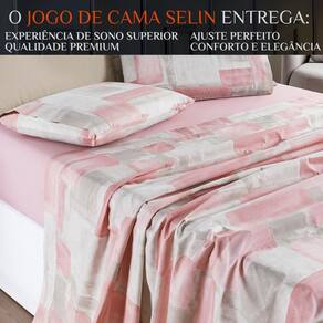 Conjunto De Lencol Casal Queen Size Selin Algodao Estampada COTTON Cor: ROSE