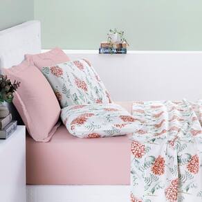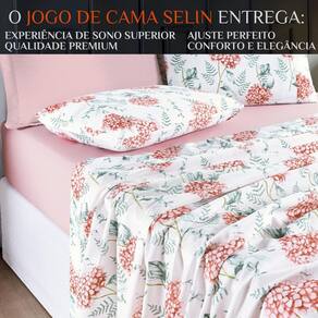 Conjunto De Lencol Casal Queen Size Selin Algodao Estampada COTTON Cor: ROSA