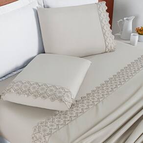 Conjunto De Lencol Casal Super King London Bordado Inglês 200 Fios NOBLESS Cor: Amendoa
