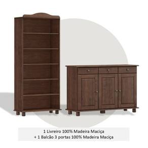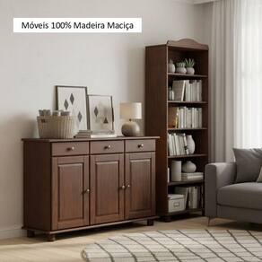 O equilíbrio perfeito entre organização e estilo! O livreiro, com estrutura em madeira maciça na cor Café, é ideal para livros e decoração, trazendo leveza e sofisticação ao ambiente. Já o balcão oferece funcionalidade com 3 portas e 3 gavetas, pés torneados e acabamento acetinado que valoriza os veios naturais da madeira. Um combo rústico e elegante que transforma qualquer espaço com personalidade e aconchego! Acabamento: Pintura UV Altura do Conjunto: 190 cm Ambiente: null Ambiente Principal: Sala de Estar Cor: Café Informação Complementar: 1x Buffet Aparador Rústico 100% Madeira Maciça 3 Portas 3 Gavetas Linha Rubi Café Largura: 128,4 cm Altura: 85,5 cm Peso: 29,42 kg Profundidade: 43,0 cm Necessita Montagem: Sim