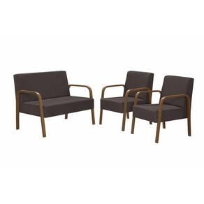 Conjunto Luna 1 Poltrona 2 Lugares e 2 poltronas de 1 lugar Braço Madeira D Salla Suede - Marrom