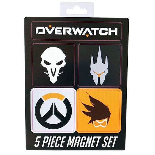 - O Overwatch magent conjunto inclui: Longo, logo, a redação Overwatch Tracer Reaper, Reinhardt & Overwatch redondo logo.